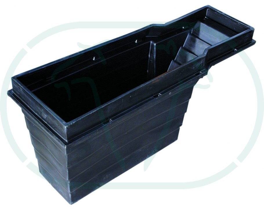 Doppbad Får är tillverkat av hållbar, stadig och U.V.-skyddad polyeten. Det har släta kanter för djurens säkerhet och är lämpligt för att doppa eller bada får i en desinfektionslösning. Designat för nedgrävd installation med en stegad utgång för fåren.